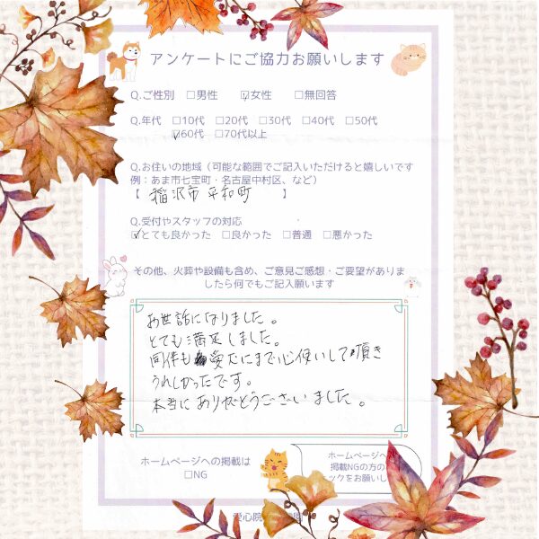愛犬の最後のお別れも深く感じられました。
