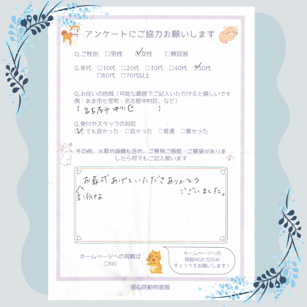 - 立派なお葬式あげていただきありがとうございました。