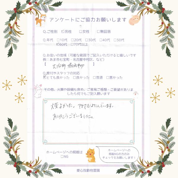 - 大変よかった。アロマもよろこんでいます。