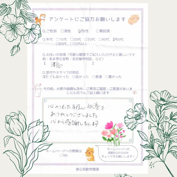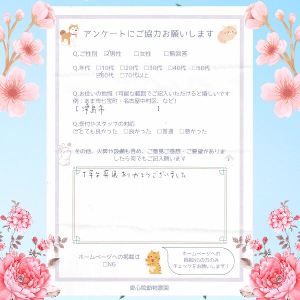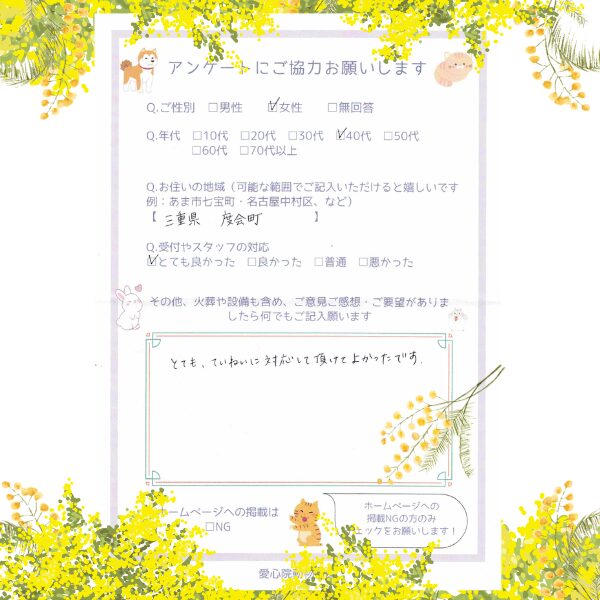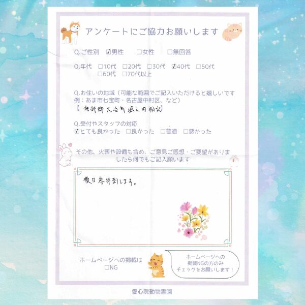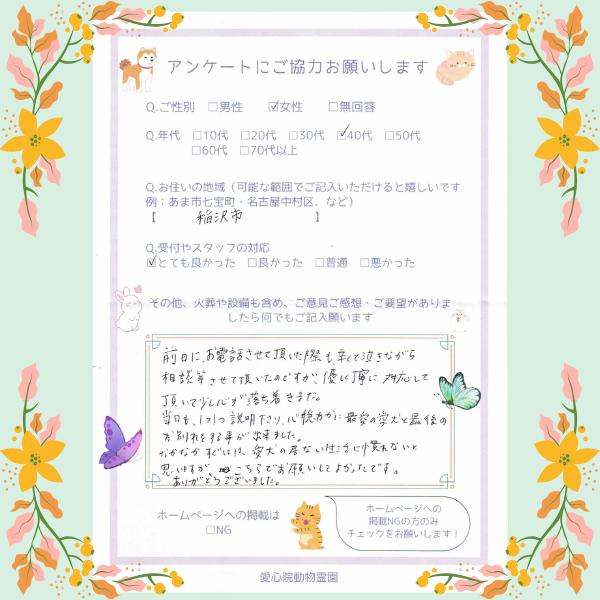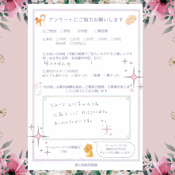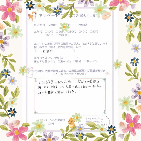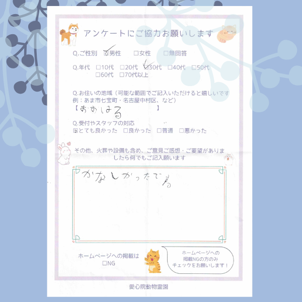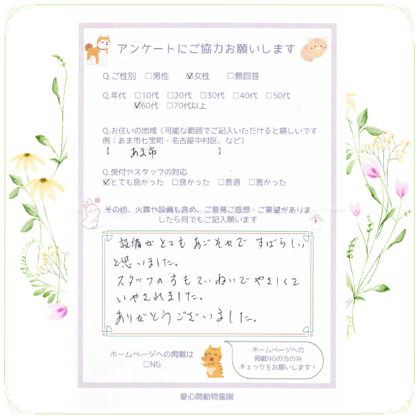 当日も、1つ1つ説明下さり、心穏やかに最愛の愛犬と最後の