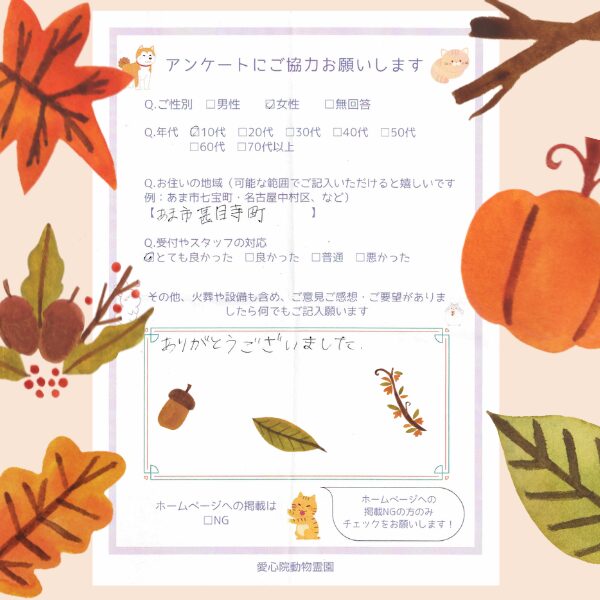 10代女性(あま市甚目寺町)