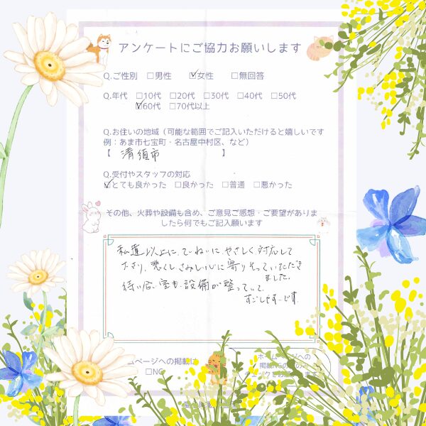 - 初めての愛犬とのお別れでとても不安でしたが、